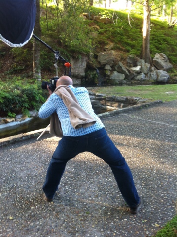 Hiking up her wedding dress and racing to capture a shot at sunset